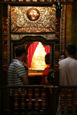 奥の金色の容器に何重にもなって仏陀の犬歯が納められています